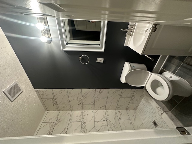 Plumbing and electrical systems were fully updated. The project included new electrical work and new plumbing throughout, plus re-piping to modern standards. Bathroom tile work and new vanities were installed in the bathrooms to complete the refreshed wet areas.