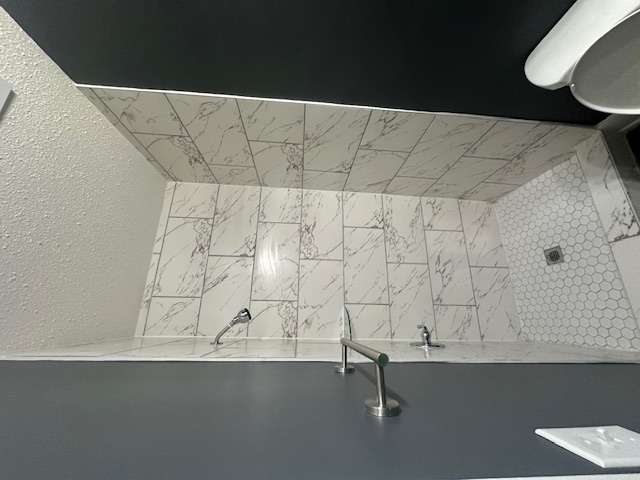 Work began with demolition, including removal of a load bearing wall and an existing fireplace to open up space and improve flow. Because a load bearing wall was removed, the team addressed the structural needs to maintain safety and stability before moving forward with interior changes.
